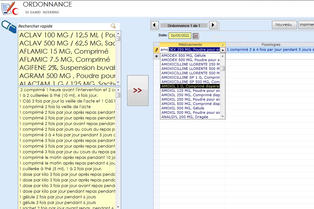 Ordonnance➤ Le module Ordonnance permet au praticien dentaire de rédiger, personnaliser et imprimer des ordonnances médicales directement depuis le dossier du patient. Intégré dans le logiciel WinDentExtra, ce module facilite la prescription de médicaments