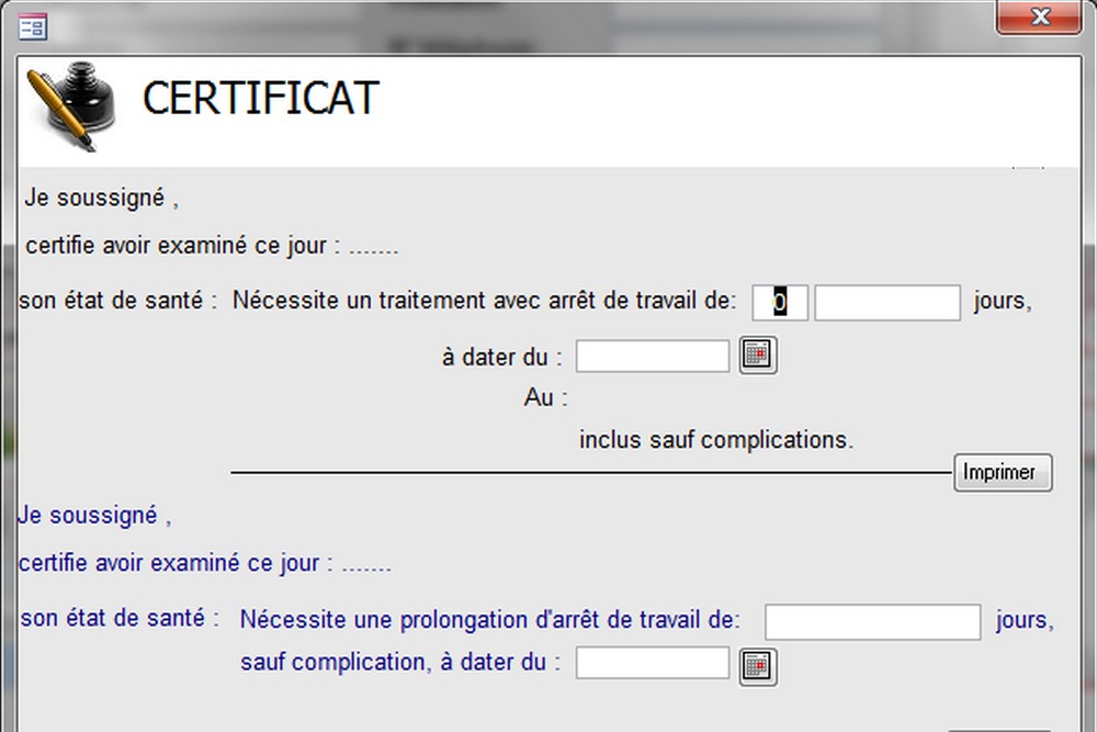 Certificat➤ Le module Certificat médical permet au praticien d’établir rapidement des certificats d’arrêt de travail ou de prolongation d’arrêt, directement depuis le dossier du patient. Intégré à WinDentExtra, ce module simplifie la création de documents médicaux officiels, conformes aux exigences légales et administratives.