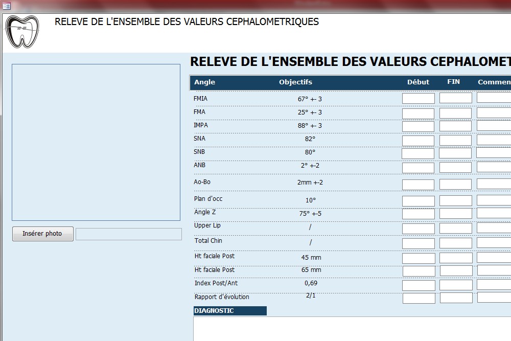 Céphalo➤Le module Valeurs céphalométriques est spécialement conçu pour les cabinets pratiquant l’orthodontie ou l’analyse cranio-faciale, en intégrant une interface dédiée à la saisie des mesures céphalométriques.