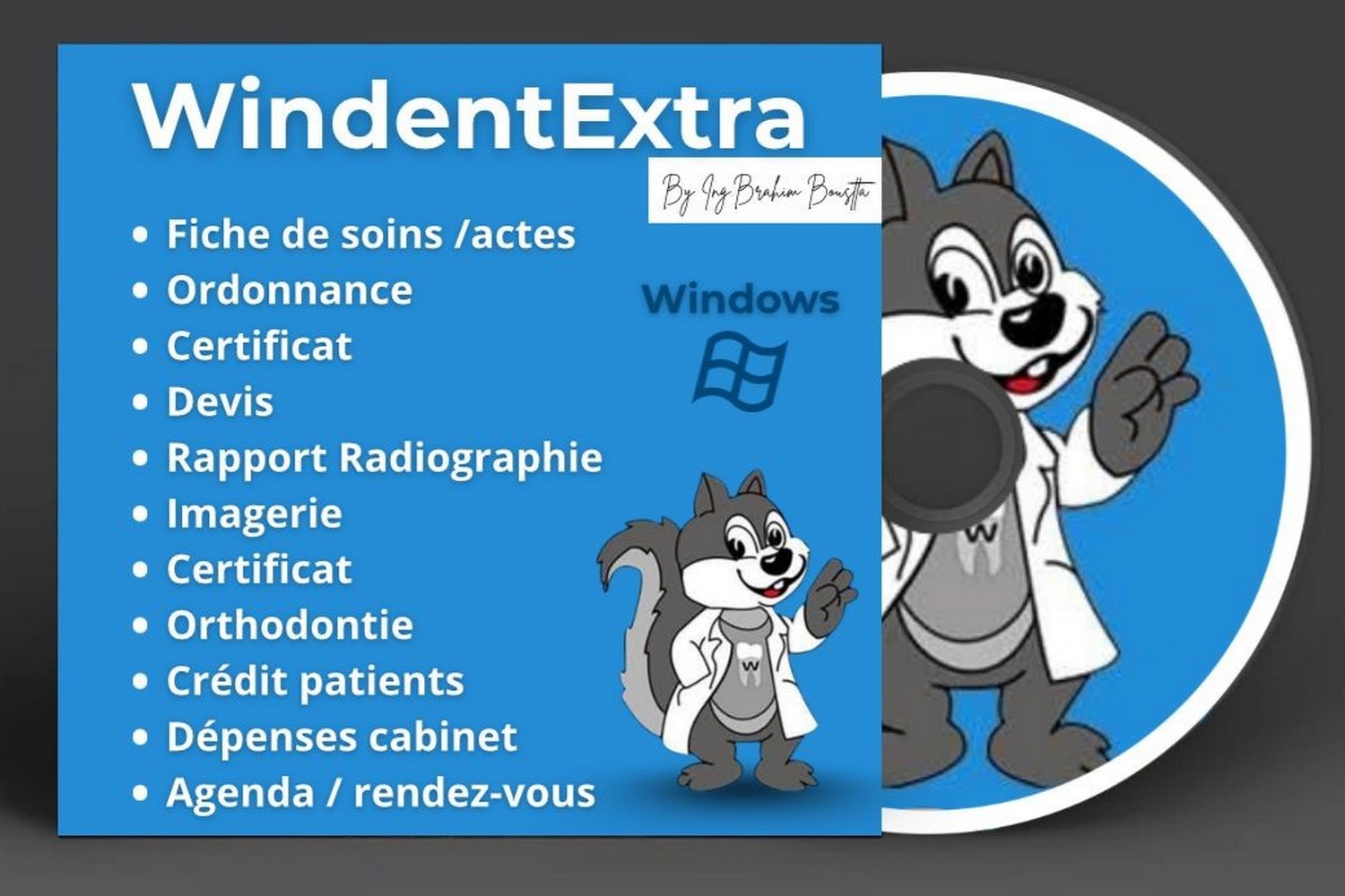 Nous proposons deux logiciels complémentaires pour la gestion d’un cabinet dentaire. Le premier, WinDentExtra, est dédié à la gestion des fiches patients, avec la possibilité d’imprimer les ordonnances et certificats médicaux. Le second, ComptaDent, est destiné à la gestion comptable et fiscale du cabinet, permettant notamment l’impression des notes d’honoraires et le suivi des obligations fiscales. Cette approche modulaire permet une organisation claire entre les volets médical et administratif du cabinet.